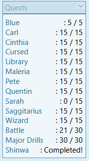 Dailies (9/9) Quests (3/9)