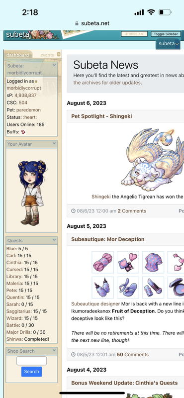 Quests Blue: 5 / 5 Carl: 0 / 15 Cinthia: 15 / 15 Cursed: 0 / 15 Library: 15 / 15 Maleria: 0 / 15 Pete: 15 / 15 Quentin: 15 / 15 Sarah: 15 / 15 Saggitarius: 15 / 15 Wizard: 15 / 15