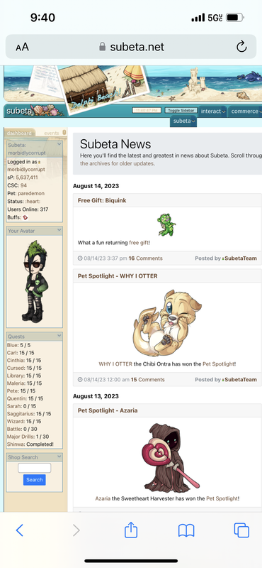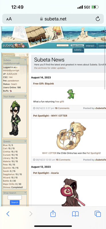 Quests Blue: 5 / 5 Carl: 0 / 15 Cinthia: 15 / 15 Cursed: 0 / 15 Library: 15 / 15 Maleria: 0 / 15 Pete: 15 / 15 Quentin: 15 / 15 Sarah: 15 / 15 Saggitarius: 15 / 15 Wizard: 15 / 15