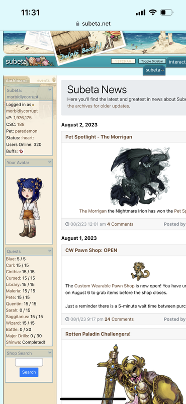 Quests Blue: 5 / 5 Carl: 15 / 15 Cinthia: 15 / 15 Cursed: 15 / 15 Library: 15 / 15 Maleria: 15 / 15 Pete: 15 / 15 Quentin: 15 / 15 Sarah: 0 / 15 Saggitarius: 5 / 15 Wizard: 0 / 15