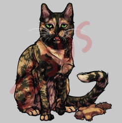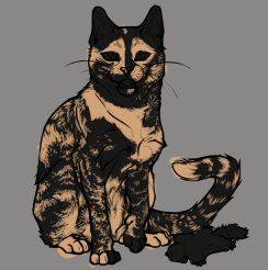 the only particularity i have about her markings is that she has a black patch over her eye; the rest can just be done however looks compositionally best. eyes are bright blue (sort of like the color on her profile), and i think she'd look cool with a couple earrings and maybe even a tear in her ear (she's a bit of a rowdy punk).