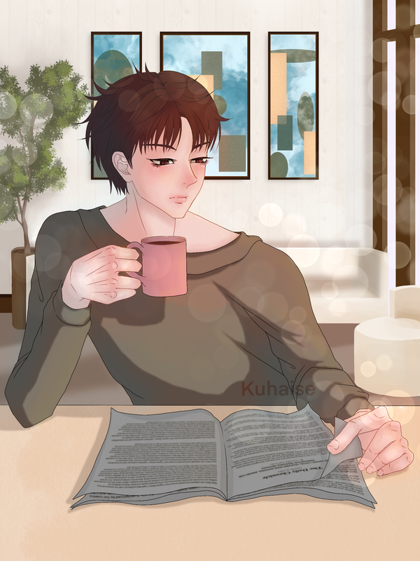 i wouldnt go under 35 dollars! Maybe 50 dollars to 150 dollar range...especially the guy holding the coffee. because it has good shading, lineart isnt super thick which may appeal to some,and there is a nice interior background. but Thats just a rough estimate because i dont know how long it takes you.