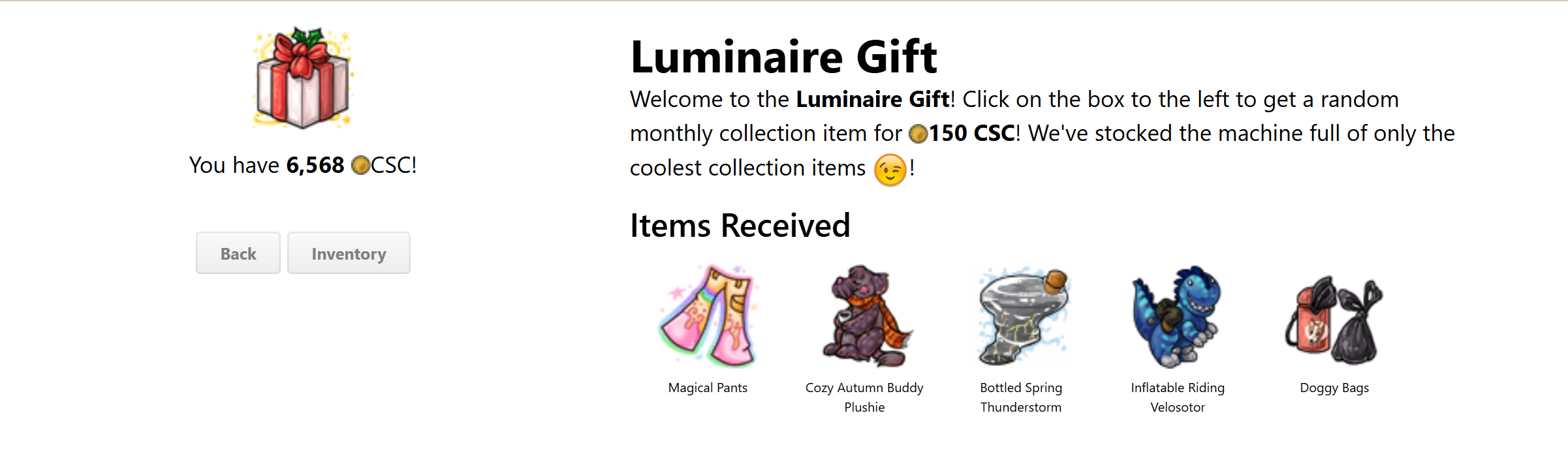 oh what a surprise to login to! could i get prize A? thank you so much :)