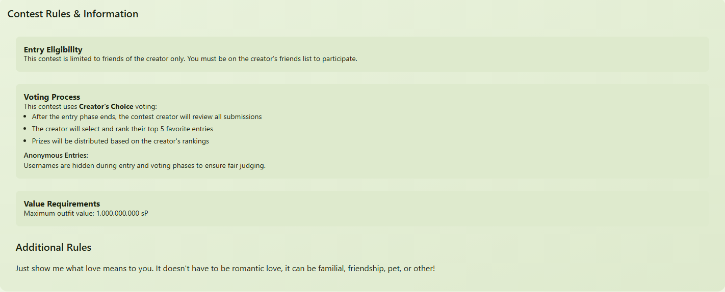 Any updates on why certain contests aren't showing up for some users/outfits? I'm really bummed that I won't be able to join a handful of contests that I spent hours making HAs for before their entry phases close. :(