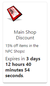 15% off items in the NPC Shops!