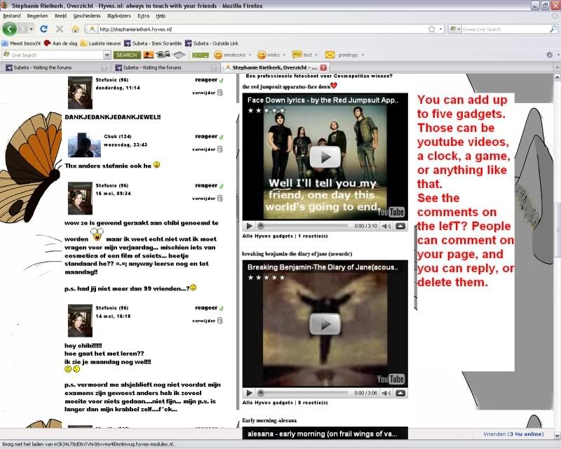 hmm actually I don't like both. But maybe that's because none of my friends has a facebook or myspace account. I think Hyves is much better, but Hyves is a Dutch site so I don't think you guys will understand much of it :/ Oh wait, let me take some screenshots of it :D
