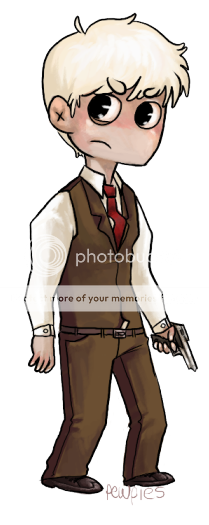 headshot, chibi, or quad??: Chibi picture reference(s) or text description, either is fine: Kalvyn I know you said not to give you a bunch of characters to choose from, but the 4 different outfits to choose from is okay, right? I can pick one if not. facial expression or general mood of character: Curious and playful do you need it transparent?: Nope other: He's supposed to look rather androgynous and he naturally has a winged tip on his eyes as well as a line of red eyeliner and the two lines across his nose he was born with them. I know it says 'cat eye' in the ref but I meant winged tip and I couldn't think of the term at the time.