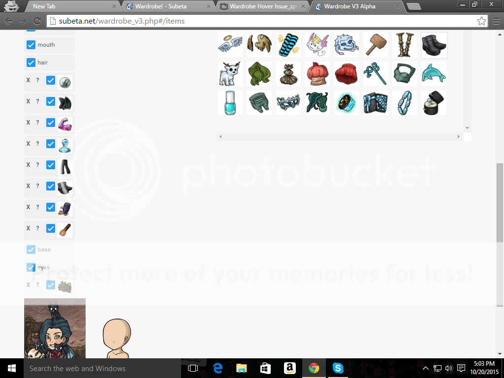 The newest push you did seems to have killed it for me? The items forever have the buffering wheel, and now if I have any items on it moves my avatar to the very bottom of the page. Inside of being side by side with the item list as it should.