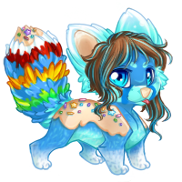 He has star dust oozing from behind his skull and from his flank in the form of a tail. (: