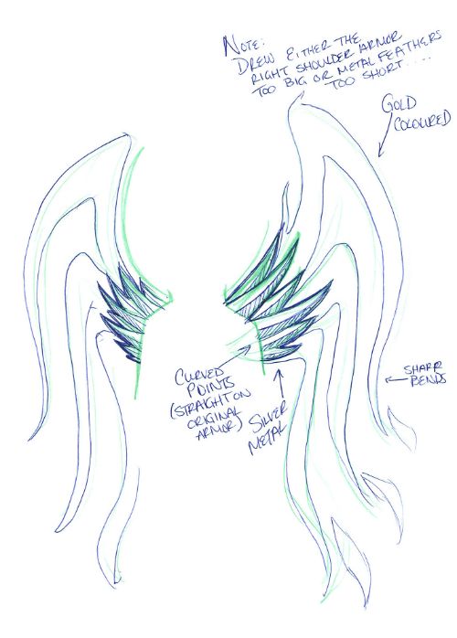 Changes: Armor is silver, wings are gold energy, armour part curves instead of being straight, Wings have bends instead of smooth curves.