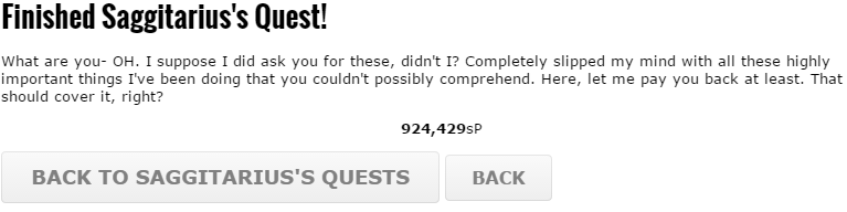 He's being really generous today. :) I got 892,990sP from one quest alone! O.O