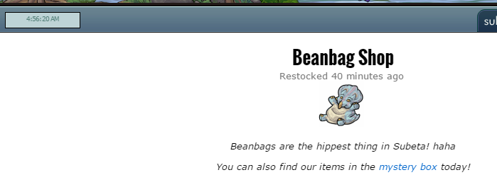 Right now I'm watching a 37 min time for last restock in the beanbag shop, which is better than before but still sucky. Here's to hoping this gets better as the testing wears on.