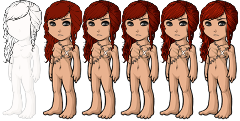 It's a cute hairstyle and idea yes. However, it's way too blocky and quite shiney. So much so it looks unnatural. Tho, it does remind me of some hair you can see on MMORPGs lol. The last one also looks like it got pixelated when you attempted to increase the saturation. There are better ways of making different colors other than just sliding the hue and saturation bars around. But, that's a bit more complicated than I can write out here. Be careful not to put too much soft shading in there, staff can be rather strict about that. And I would tone down the highlights Try using something other than the dodge tool, or layering with the 'screen' selection on the layer. Just a bit too sharp, but the outline is nice.