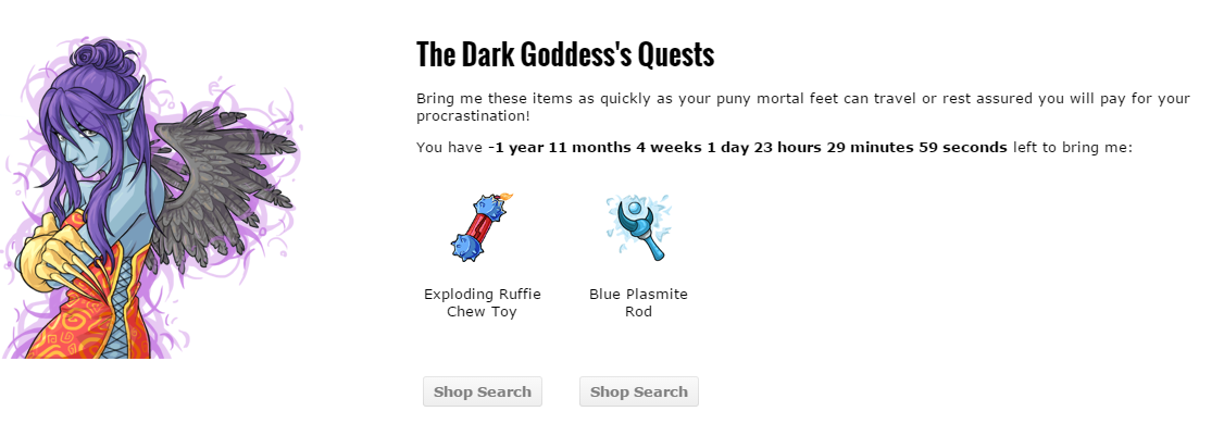 I was doing my The Dark Goddess's Quests, and she suddenly kept telling me this. Is this happening to anyone else? I had no trouble completing the quest and got the usual rewards.