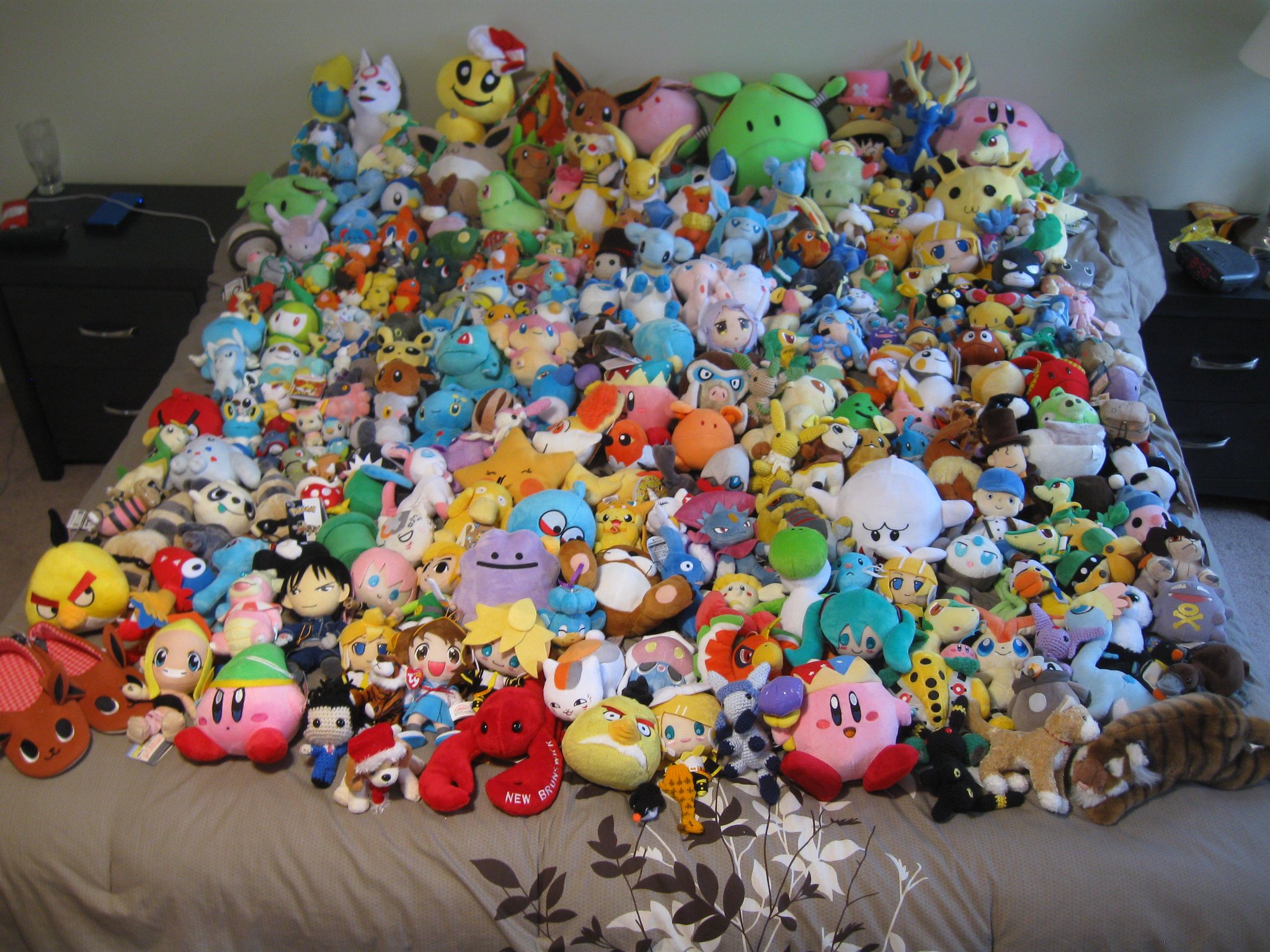 Went through my files and found some photos of My plushie collection, Close-up. They're not all mine, it's shared between me and my husband. That's our king-sized bed they're on. This was taken last July, so the collection grew a bit since then.
