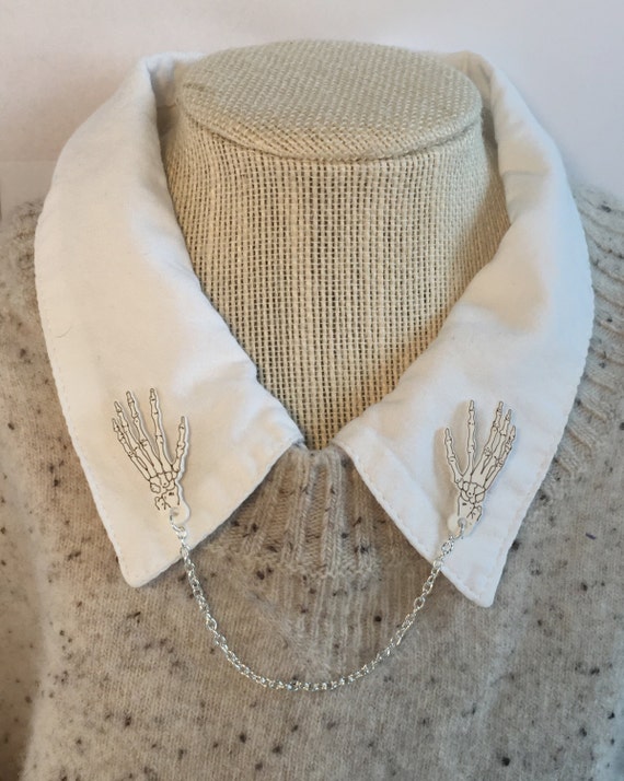I would like a collar, either something like this, or a Peter Pan collar with one brooch on one side instead of clips. The clips/brooch don't have to be skeleton hands either, but I think something for fall or Halloween/Morostide would be cute. ^^
