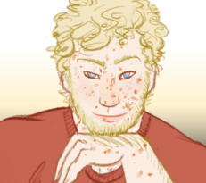 Noah will tell you in absolutely no uncertain terms that he is God's gift to mankind, and will then flirt with you shamelessly until his two partners come to rein him in. He has partial albinism, with All Of The Freckles and fine, curly blond hair. He is pretty ripped and also pretty short, 5'6". White, probably Germanic descent. Face model: Mariano Ontañon.