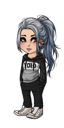 so here's the sketch i made x i got her outfit and hair from one of the outfits in the reference section of her pet page. i also pulled down the bandana a bit so you can see her face. is it fine with that hair or should i use her hair here instead?