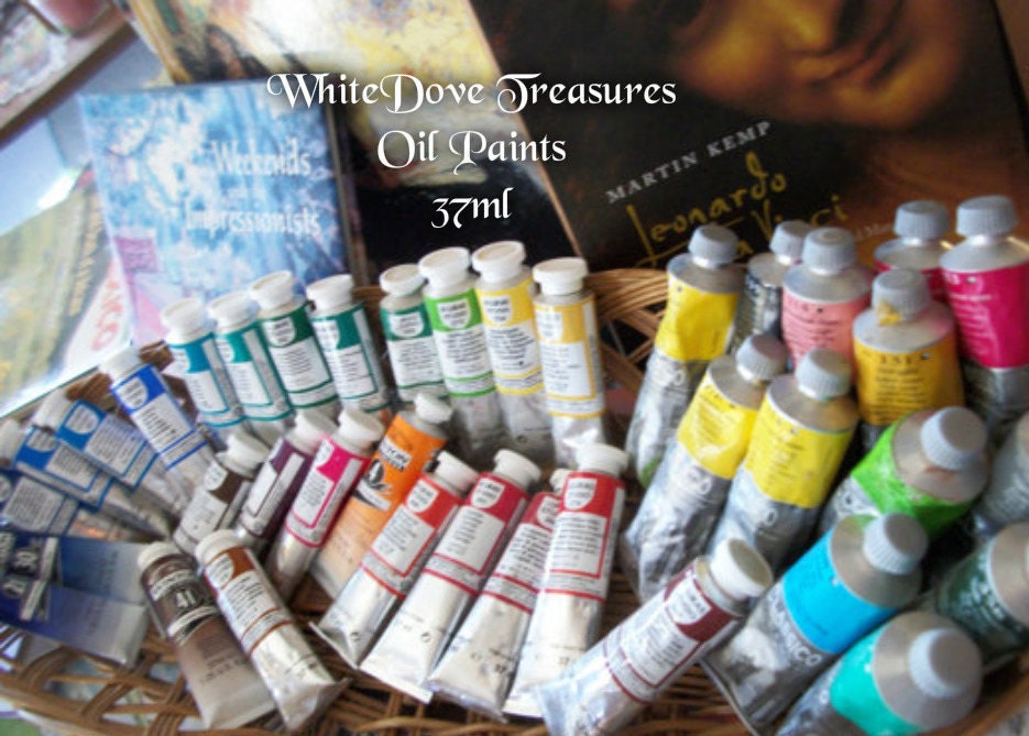 Watercolour tubes Oil paint tubes Oil paint spatulas More oil paint spatulas Tempera paint Cross-stitching needles Cross-stitching design books Cross-stitching threads