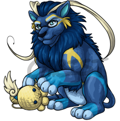 i picked storm for him because it looks super intimidating and protective, but his actual colors won't look storm at all...they're actually more like galactic (without the swirly gold bits)(img ref), with the light blue markings on the shoulders changed in shape and color to look like the swedish flag (img ref). super easy, its just a cross instead of those weird circular markings on the archan's shoulders. i'd really love his head ribbon things to be the color of his actual hair, from the ref above~ and of course i'll make a color guide on a basic archan to help you see how it should look!