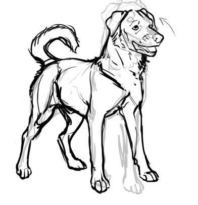 @/ christ ahhh no I love it it fits very well! I thought I had a little description in with my refs but I think I forgot to save it, sorry. he's a german shepherd/border collie mix, as far as we can tell. gshep coloring, collie head. :') he's very reserved and can be quite timid around everyone who's not me but he's also playful and silly and inquisitive. I would've chosen something like the pose you've put him. Good pick.