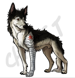 : you're the best my guy i'll start with my newest pet Decommission, a fusion between my pets Buchanan and Winter Soldier (you have done art for both of them, idk if you remember). Buchanan is a silver sable panda german shepherd and Winter Soldier is...solid black; i'd like for this new guy to be a fusion of both, since the concept of this guy is that he's like...bucky barnes after he's stopped being the winter soldier and is left with only the memories of both of the lives he's lived. so he's kind of washed out, like his old persona is showing through what he's become, like he's neither james barnes or the winter soldier anymore. idk it's really hard to explain. i really like the look of him in this (bottom right), esp with the long stringy hair, but i'd like him to have like...Buchanan's colors on the bottom/belly and Winter Soldier's on the top/back ??? if that makes sense ??? idk i know this one is confusing; if you'd rather do an overlay for Buchanan (since my subeta-fied version is kind of shit), that would be fine...he was gonna be my second option anyway. be prepared for so much work fam