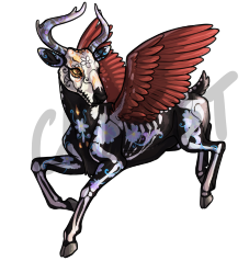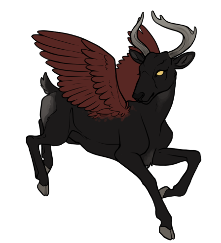 i feel so blessed -- but aight i can't directly link bc i'm on m phone but what i have ideas for is a small deer / ram. hes a mix between voodoo ( owned by ) and yori ( owned by ). so he gets lil itty bitty feathered wings. and prolly brighter colours. but also his skull and bone markings are more like candy skulls. his base colour is still black as well.