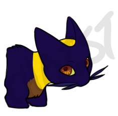 Hey, sorry for latebutts, finally home today and managed to get enough refs I think She's cute and playful, anything with open eyes would be great. She's a Mew (pokemon) + Bombchu (Zelda series) combined basicially :p So the lower head shape is more of a Mew, with the bombchu whiskers and ears. Tail tip is like a lit fuse. Everything yellow and the tail tip glow slightly . The one titled "colours" has all the base colours (head is the same but i started painting already :L) if you need more info lemme know x3