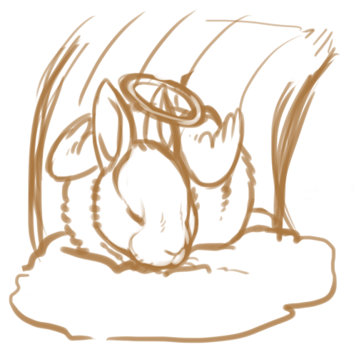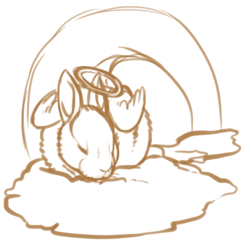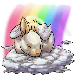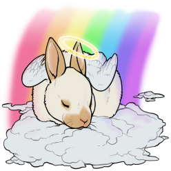 I would like it to be a light tan and golden siamese sleeping baby bunny (more realistic, not a kanis) on a cloud, that's connected to the end of a pastel rainbow. With a little halo and angel wings. <3