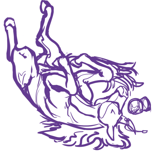 Only thing I'd like is maaybe see if you could pull in one of his back legs in a little bit closer together (maybe the one on the left, that's foreshortened?) just so he's not showing off too much of his grundel. If that would be hard to do without redrawing or making it look awkward though, don't bother. :) I know horse bodies are wild, and I seriously love this and can't wait to see the rest.