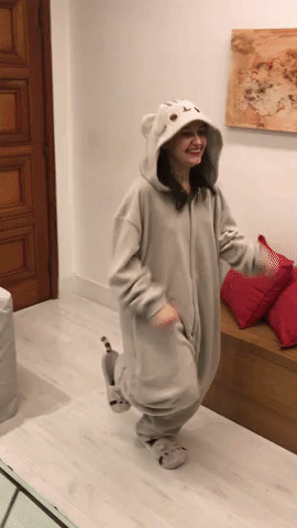 Ooh my gosh! I love the gif of the adorable comfy-looking animal outfit and your cute cute self!!! <3<3