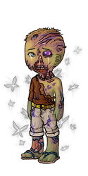 The character would be my zombie boy Eater, he died at age of 8 so he's still a child. You don't have to worry about perfectly reproducing the reference, zombies are kinda detailed so you can have some artistic freedom c: reference here