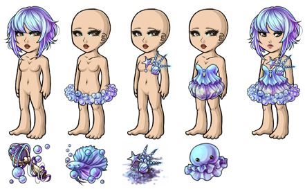 SLOT PRICE: 700CSC each (wig & dress), 600CSC each (chestpiece & bubbles)