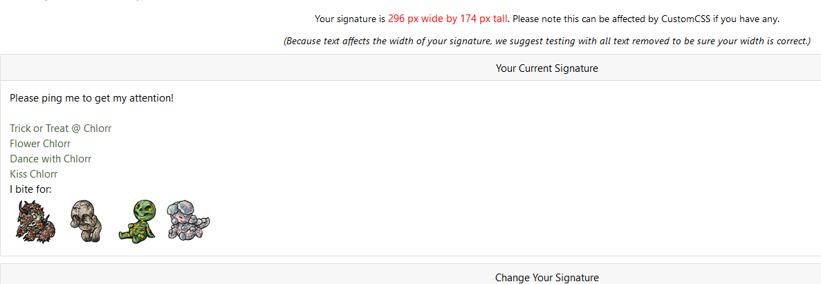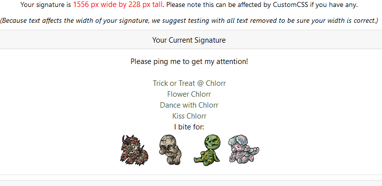 I know that the combined length and width of a forum signature is 325px by 450px and I try to stay mindful of that when editing my signature, so I noticed a surprising issue when using the sCode that allows me to center it, and that's this:
