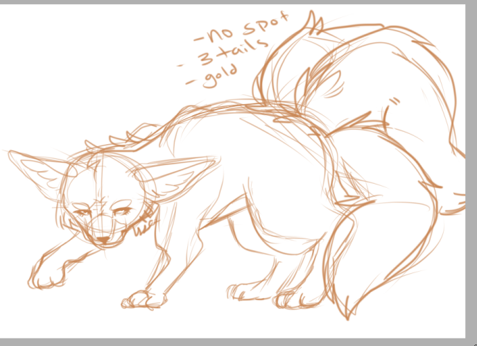 He's looking great so far! The only thing I'm not sure about is whether or not you've made him fluffy on his back? It's hard to tell with all the sketch lines ;) He is only supposed to have fluffy tails, the rest of him is only covered in very short fur that doesn't really look fluffy at all. If that's what you're going for then don't mind this comment and keep doing what you're doing XD