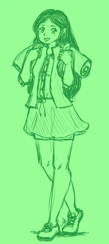 I tried to make it look a bit like the official art style. Also I couldn't tell 100% but it looked like she might have shorts under the skirt, so that's what I did. I only saved one of the references like a goober.