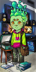 Name: Roloft Rumberly Species: Super-brained human (that blossoming under the hat is a brain. ;-) ) Pronouns: a he/him. Major: Dragon taming (transport, guarding purposes). He's training to become a dragon assistent, which mainly holds that he's a certificated tamer of dragons. They train with specific dragons so that the students get to know the different type of dragons. Yet, as you might expect, the students often bound too much with their dragons and they don't want to part anymore when their training is over. luckily they have a hatchery for the smaller dragon types - the large dragons are taken from the wild. It's the student's big test in their 3rd (one to last) year, when they have to go in small grounds on fieldtrips to each tame one of the wild dragons from either the forest, the mountains e.a.. The terain they are sent to is determined earlier in their study, when they have to learn about differen environments and which one suits them best. Home: Just Spooky Uni, it's a cool place and Roloft have been an intern for 4 years! Likes & Dislikes: tuna salad and fried rats Roommate: pff no idea. Does everyone have one?