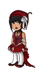 This is darling! You picked a really fun song for this, and I love all the outfits, though Jaime's scans a little weirdly to me. Her hair is so big compared to the others', and kind of overbalances her outfit. Overall, though, I still think it's a very good set of outfits. I like how all the ladies have fancy tights and lots of ornate lace, and Julien really does look like he crawled out of the bayou. His makeup is just amazing.