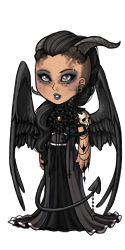 I feel like you could've gone a little more off the beaten path, but also, you rocked the hell out of the beaten path. You clearly had a vision with the three different categories of spooky, while keeping them all centered with the horns and the black and the drapey things. I also think the faux medieval/Victorian/Edwardian/whatever look works really well with the fact that they're demons, like, of course demons are all old fashioned and stuff. It's cute, it's cool, thumbs up.