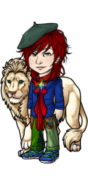 Del has dressed Jacob to model the RGB color primaries and Vivian to model the CMY color primaries. When they made Vivian's outfit, they had it pointed out that those were "unicorn colors" nowadays. To add to the similar/opposites theme, then, Del added a lion/unicorn concept to the hairstyles and props.