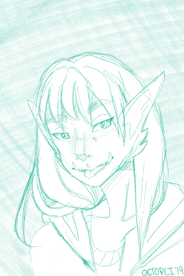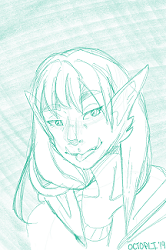 References: hybrid dragon, girl with short hair up front (long in the back) wears hoodie with shorts. But a bust/headshot is fine. I'd love to add the dragon ears to her. if it goes lower, then just add the tail (supposed to be metal material but can be just white) if colored, her eyes can be round and green like a human or slitted and red like a snake.