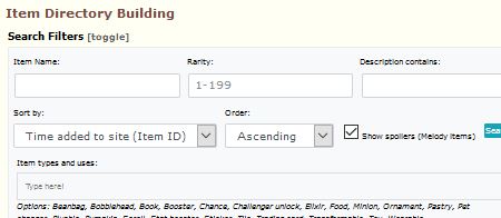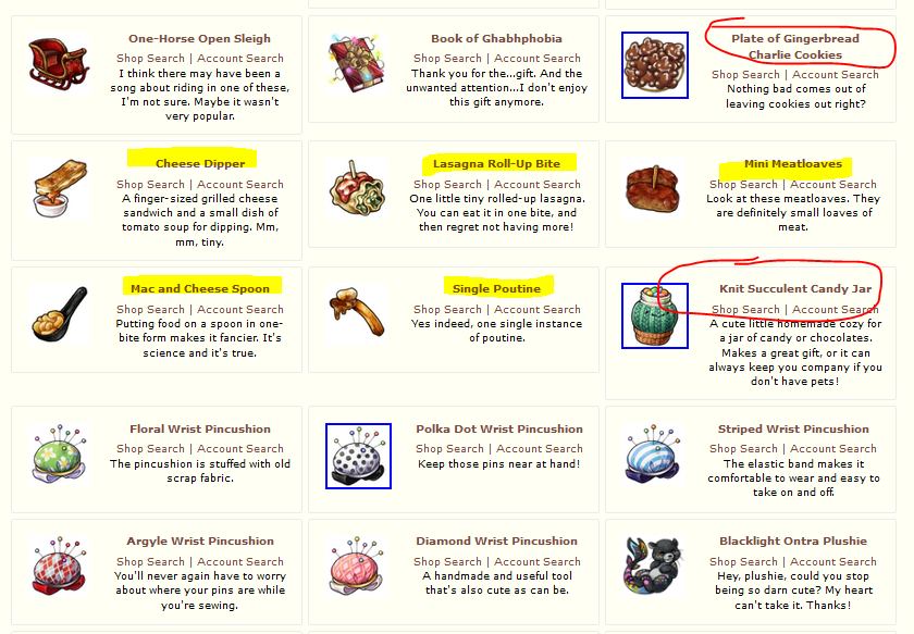 First image is the filters, to show I'm not excluding anything. Second image is item list. Highlighted items are from the New Years Shop. The first circled item, was released right before the new years shop items, which is fine, the second circled item is the only item showing from the January collection. After that should be the Nostalgic Zasaba stuff, then the Pincushions.
