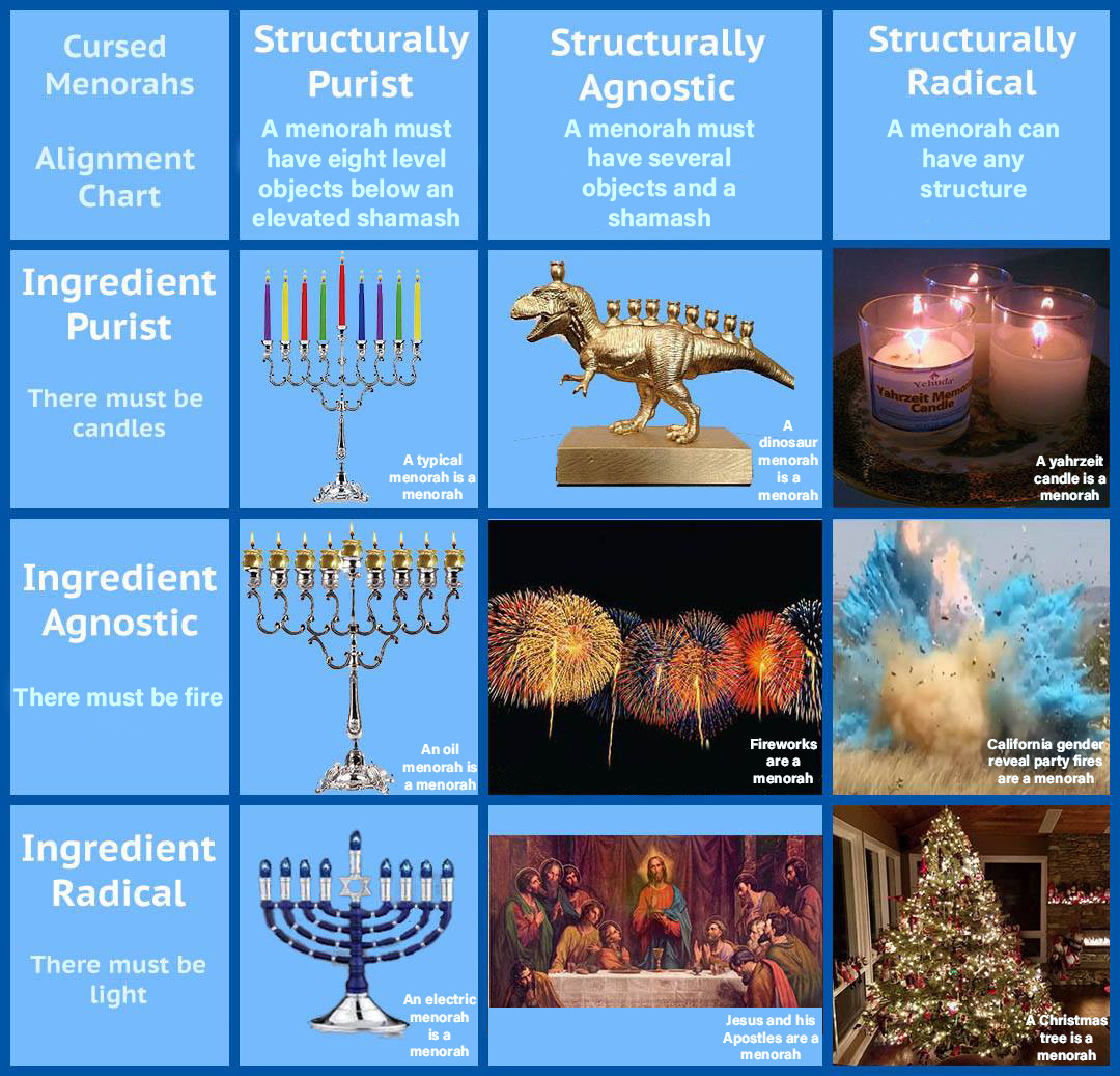 Thank you for the structurally-agnostic and ingredient purist menorah that we all needed in our lives.