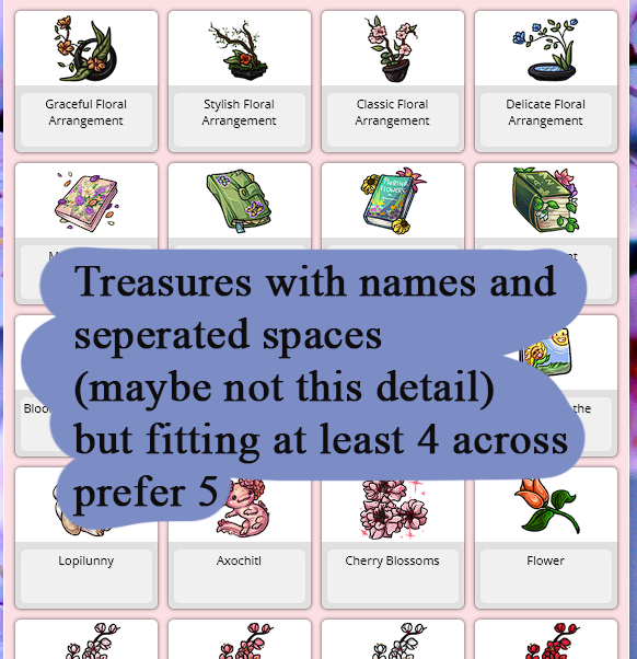 For pet profile: Any areas removed - regular ones I guess? option for friends but not many of my pets have that as a thing What sections would you like displayed: story, maybe 2 areas, treasure, stats (optional to remove), legacy name,