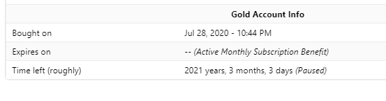 It says I have (roughly) 2021 years, 3 months and 3 days left on my Gold Account.