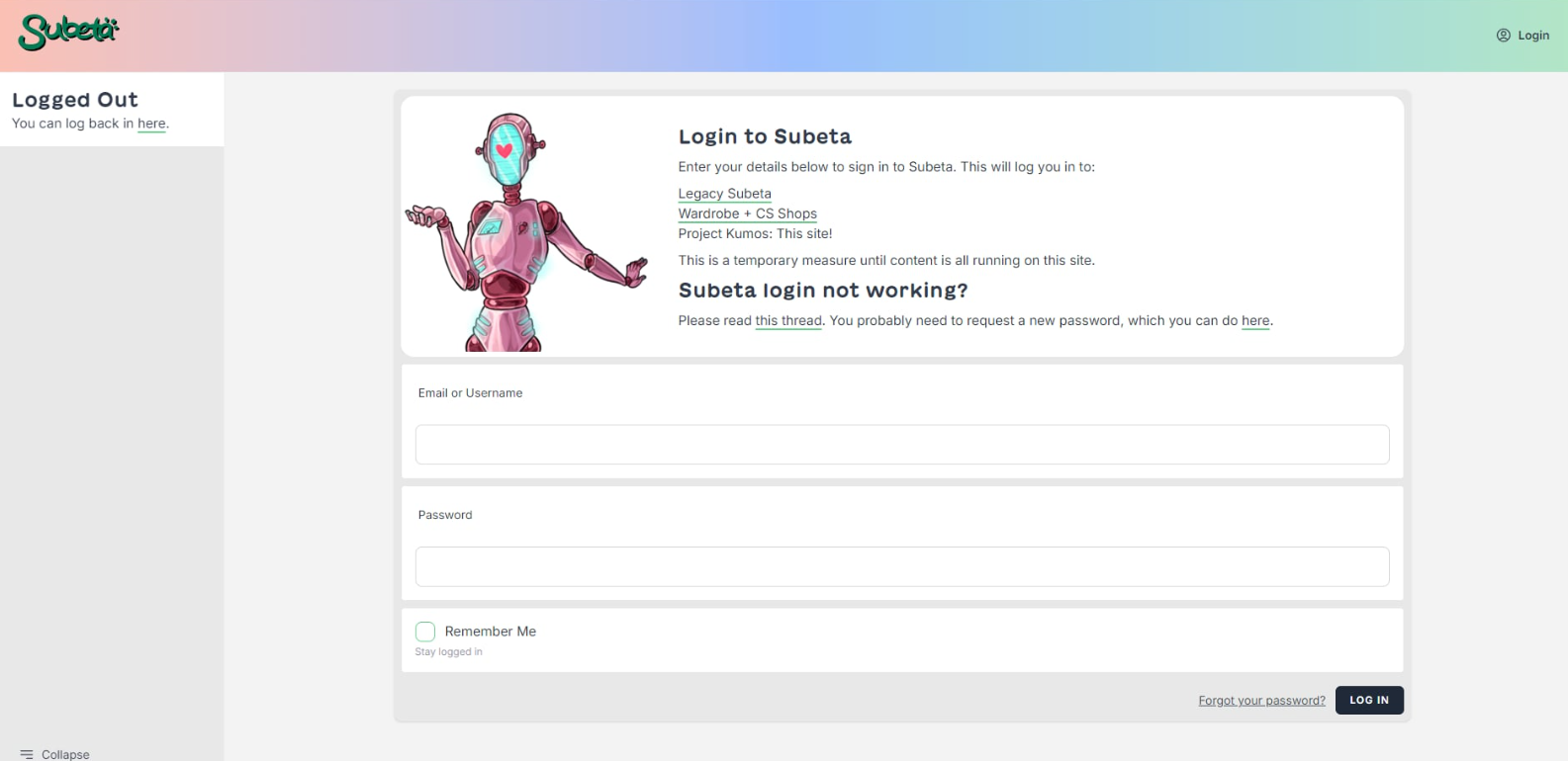 My partner cannot log into Subeta! She goes to the login page and only gets a 500 Server error. It makes me wonder how many cannot log in or let you know.