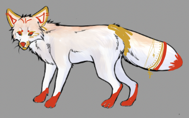 omg okay so, since it doesn't have to be a traditional fox, I would LOVE to see an albino fox with kitsune(red) and/OR gold set with markings!! i took the liberty of making this super shitty edit (lol) on this fox to show ears/feet/tail (i only drew on the face for the overall vibe):