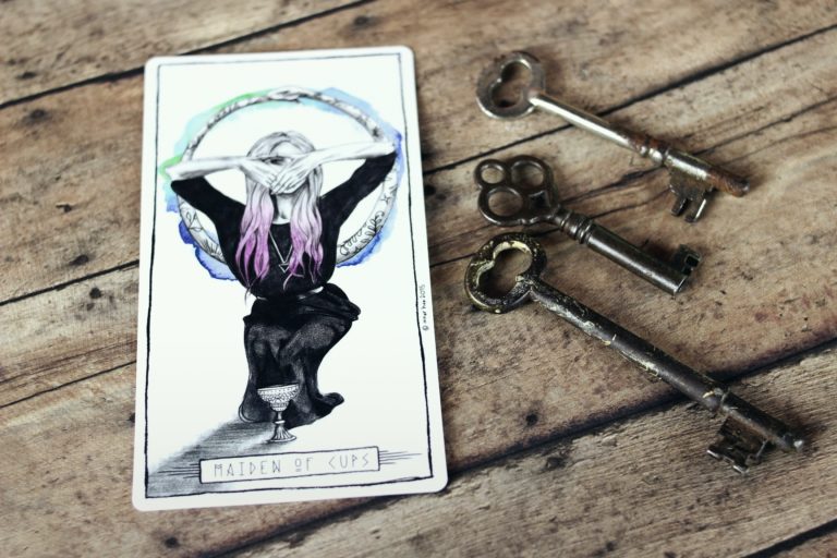 The banging on the cabin’s door is incessant. Your character throws the soufflé into the oven and rushes to open the door. No one is there, but on the floor, they see three antique brass keys and a Tarot card (JUSTICE, MAIDEN OF CUPS, or any other card). Write what happens next.
