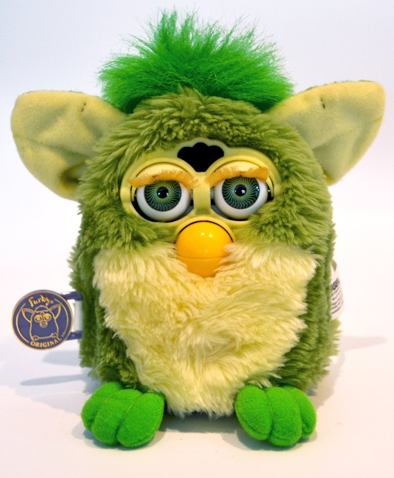 I'd like him to have a green and cream color scheme like the frog furby below. The eyes can stay the same blue they are now though.