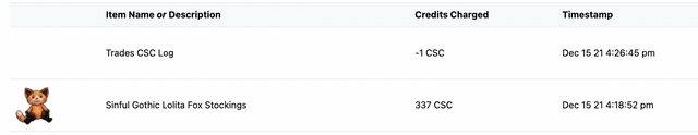 also, i know i've seen around recently some users have been having problems with their CSC not adding up versus the purchases other users have made in their CW shop. having some sort of record of CW shop purchases would enable people to better keep track of things like this and be able to see any potential discrepancies & promptly file a ticket. much easier to keep things in line for both users and staff, especially when it comes to CWs where real life money is involved.